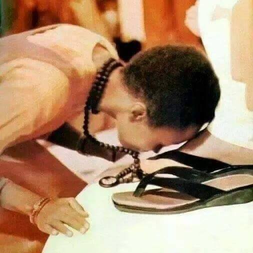Can’t see the rest of Osho’s body and face here, and the discomfiture I myself saw when this individual bowing down behaviour happened.